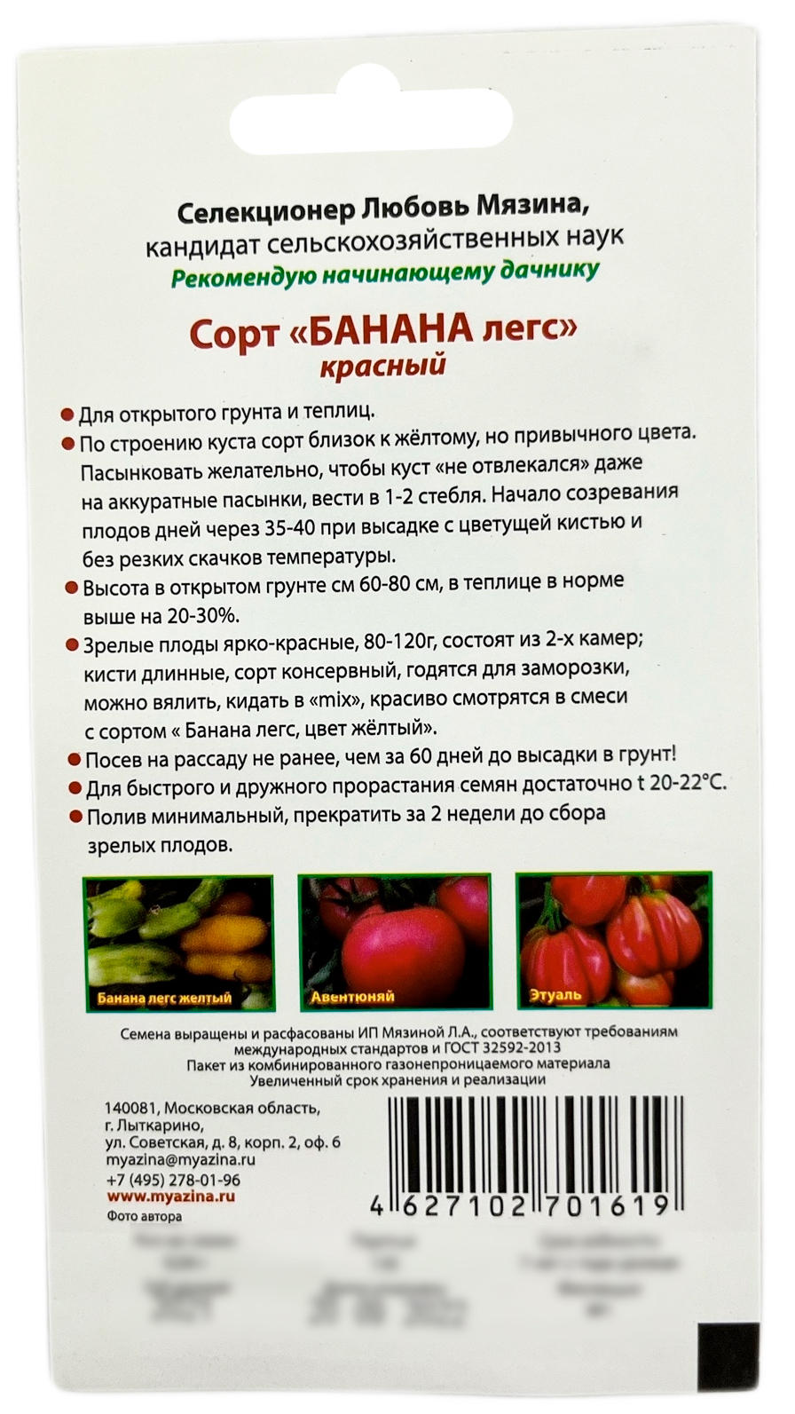 Томат Банана легс красныйСреднеспелый сорт для открытого грунта и теплиц. Высота в открытом грунте 60-80см, в теплице в норме выше на 20-30%. Зрелые плоды ярко-красные, 80-120г, состоят из 2-х камер. Кисти длинные, сорт консервный, годятся для заморозки, можно вялить. Посев на рассаду не ранее, чем за 60 дней до высадки в грунт. Полив минимальный, прекратить за 2 недели до сбора.