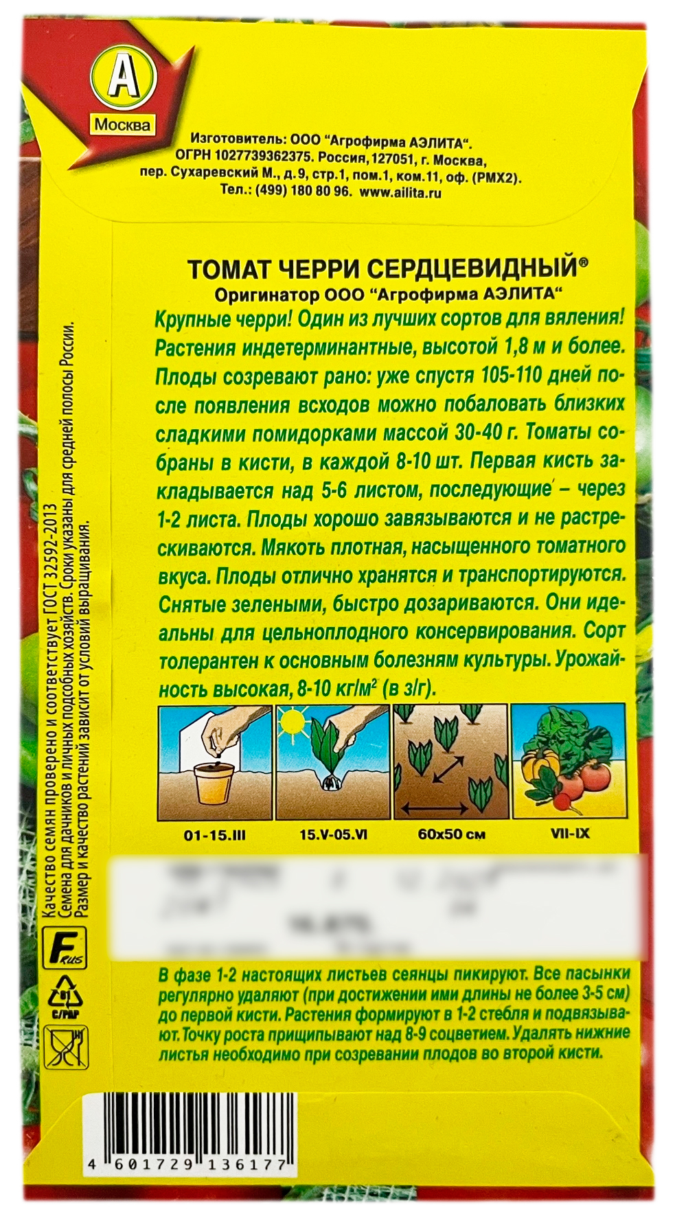 Томат ЧЕРРИ СЕРДЦЕВИДНЫЙ АЭЛИТАКрупные черри! Один из лучших сортов для вяления! Растения индетерминантные, высотой 1,8 м и более. Плоды созревают рано: уже спустя 105-110 дней после появления всходов можно побаловать близких сладкими помидорками массой 30-40 г. Первая кисть закладывается над 5-6 листом, последующие – через 1-2 листа. Плоды хорошо завязываются и не растрескиваются. Кисти созревают дружно. Мякоть плотная, насыщенного томатного вкуса. Плоды отлично хранятся и транспортируются. Снятые зелеными, быстро дозариваются. Они просто идеальны для цельно-плодного консервирования и потрясающе вкусны в вяленом виде!