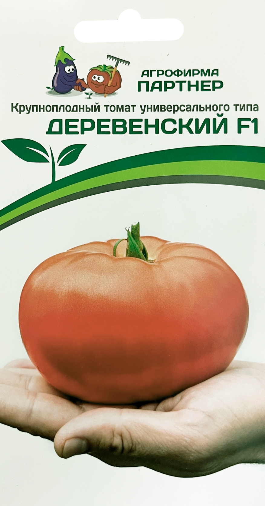 Томат Деревенский F1Высокоурожайный среднеранний детерминантный гибрид высотой до 1,0 м. Относится к типу биф-томатов. От всходов до сбора первых плодов проходит около 110 дней. Первое соцветие закладывается над 6 листом, последующие — через 2-3 листа. На растениях формируются простые и полусложные кисти с плоскоокруглыми плодами ярко-красного цвета и массой 350-450 г. Семенные камеры томатов маленькие. Имея изумительный вид, зрелые плоды обладают таким же вкусом: сладкие, напоминающие хурму. Томат Деревенский идеально подходит для салатов. Гибрид устойчив к растрескиванию и вершинной гнили плодов (For), толерантен к вирусу томатной мозаики (ToMV) и альтернариозу (Asc). Плотность посадки — 3-4 растения/м². Урожайность — свыше 20,0 кг/м².