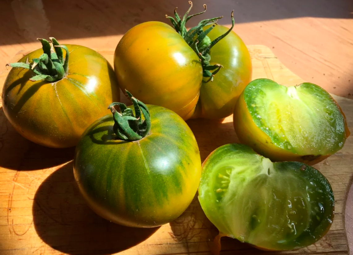 Томат Изумрудное яблокоСорт из Минусинска. Полудетерминантный среднеспелый и урожайный сорт томата. Плоды плоскоокруглой формы изумрудно-зеленого цвета в стадии зрелости весом 200-300 граммов. Мякоть сладкая, мясистая, зеленая с малым количеством семян. Плоды идеальны для приготовления салатов и употребления в свежем виде. Высота кустов в открытом грунте 1,0-1,3 м., в теплицах до 1,5м. Требуется подвязка и пасынкование. Наилучший вариант - формирование ствола в 2-3 стебля.
