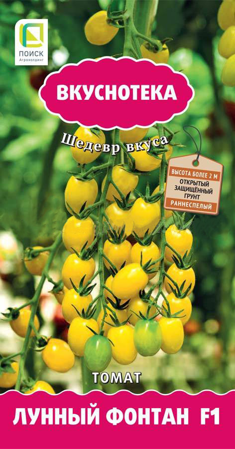 Обилие черри-томатов неповторимого сладкого вкуса с фруктовыми нотками. Индетерминантный раннеспелый гибрид для выращивания в открытом и защищенном грунте. Период от всходов до начала созревания 100-105 дней. Растение высокорослое, нуждается в подвязке и формировании в 1-2 стебля. Плоды светло-желтые, цилиндрической формы, гладкие, блестящие, массой 15-20 г, собраны в простые и сложные кисти по 15-30 штук, обладают сладким десертным вкусом с фруктовыми нотками. Устойчивы к растрескиванию и осыпанию. Рекомендуется для потребления в свежем виде и цельноплодного консервирования. Содержит низкоаллергенный антиоксидант - важнейший элемент для профилактики некоторых форм онкологических и сердечно-сосудистых заболеваний.Характеристики