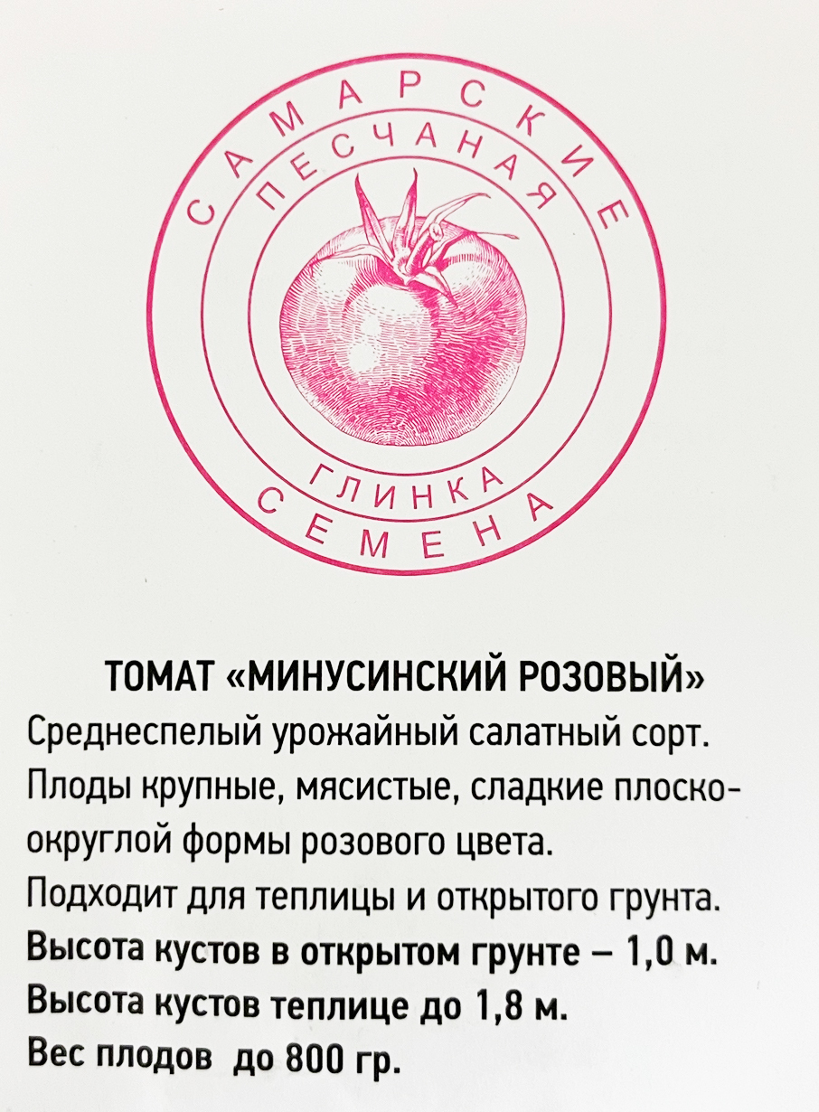 Томат Минусинский розовыйСреднеспелый урожайный салатный сорт. Плоды крупные, мясистые, сладкие плоскоокруглой формы розового цвета. Подходит для теплицы и открытого грунта.
