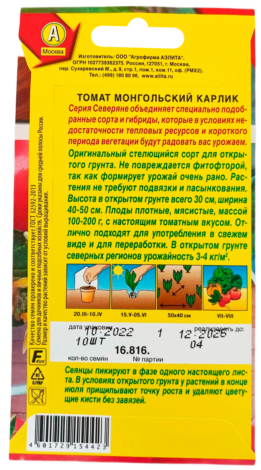 Томат Монгольский карлик 10шт Аэлита семена