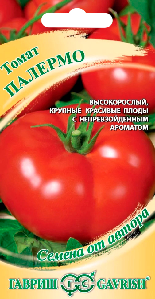 Томат ПалермоСреднепоздний (116-120 дней от всходов до плодоношения) высокорослый сорт для выращивания в пленочных и остекленных теплицах. Растение индетерминантное, высотой более 2 м. Плоды плоско-округлые, слегка ребристые, очень красивые, вишневого цвета, массой 150 г, для консервирования и приготовления салатов. Мякоть темно-красная, сочная, с приятным кисло-сладким вкусом и сильным томатным ароматом. В соцветии располагается до 6 плодов одинаковых по размеру. Сорт устойчив к основным заболеваниям томатов. Урожайность одного растения до 8,0 кг. Посев на рассаду — в конце февраля – начале марта. Пикировка — в фазе первого настоящего листа. Высадка рассады в теплицы — в конце апреля — начале мая. Обязательна подвязка растений через несколько дней после высадки. Формируют в один стебель, удаляя все «пасынки» и нижние листья, а также прищипывают точку роста в конце вегетации. Схема посадки: 40х60 см.