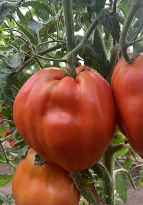 Индетерминантный, среднеранний сорт "Польская слива тётушки Сварло" (Aunt Swarlo*s Polish Plum) родом из Канады. Формировать в 1-2 стебля и подвязывать надо. Малооблиственный, Выбрасывает 7-8 кистей, по 3-5 плода на каждой. Плодоносит до заморозков. Плоды красного цвета, удивляют своим разным размером - то он аккуратный удлинённый, см 10-12, то вдруг какой-то начинает «раздувать», как-будто сливаются сразу несколько, образуя плод, весом 600-700 г, до 1кг, и главное не полый внутри! Сплошная вкусная мякоть. Для свежего употребления и любых заготовок на зиму! Для «вынашивания» крупных «мячей» и завязывания кистей до верхушку требуется регулярная подкормка микроэлементами.Характеристики