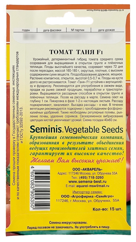 -Томат Таня F1 15шт семенаАрахис семенаКукумисАрбузыАртишокБаклажаныБамияБобыБрюкваГорохГорчицаДайконДыняЗемляника, клубника семенаКабачкиКапустаКартофель семенаКукурузаЛагенарияЛукМангольдМелотрияМорковьОгурцыПатиссонПерецПодсолнечникРевеньРедисРедькаРепаСвеклаСемена экзотических растенийСпаржаТыкваФасоль, вигнаФизалисЧеремша