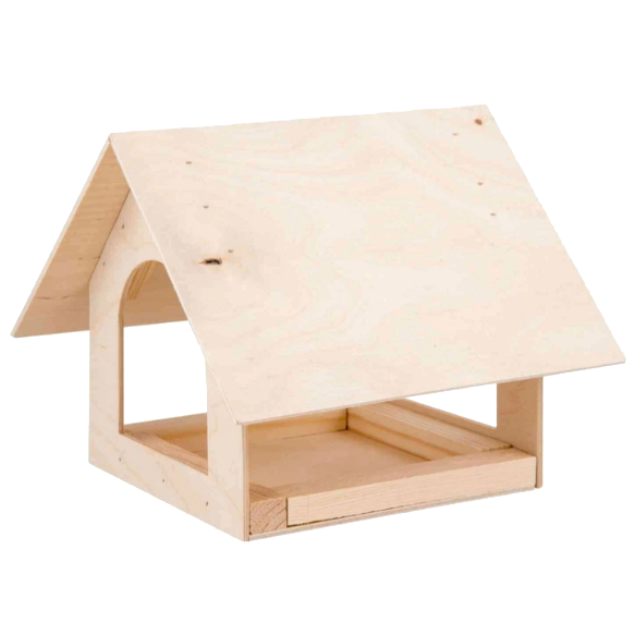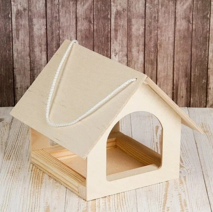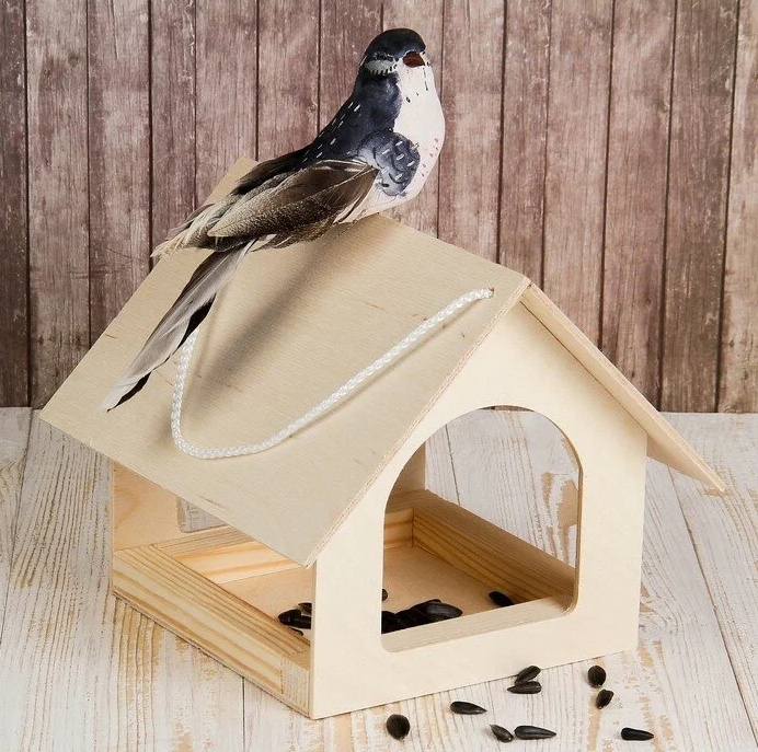 Птицы используют в качестве корма вредных насекомых и их личинки. Тем самым помогают защищать урожай от многих вредителей. Изготовлен из березовой фанеры и древесины хвойных пород.