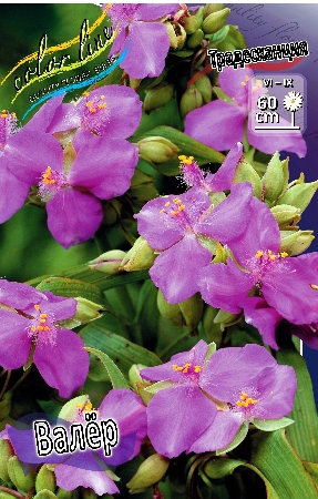Традесканция Валер относится к группе многолетние травянистые растения. Куст с прямостоячими, ветвистыми, угловатыми стеблями, облиственными по всей длине, высотой 60 см. Листья линейно-ланцетные, фиолетово-зеленые. Цветки плоские, сиренево-розовые, собраны в зонтиковидное соцветие. Цветут с июня по август. Месторасположение: предпочитают слегка притененные, защищенные от ветра места. Почва: требует участков с увлажненной, богатой, гумусной почвой. Использование: длительное время сохраняют декоративность. Хорошо смотрятся у водоемов. Размножение: семенами и делением куста весной или осенью.Характеристики