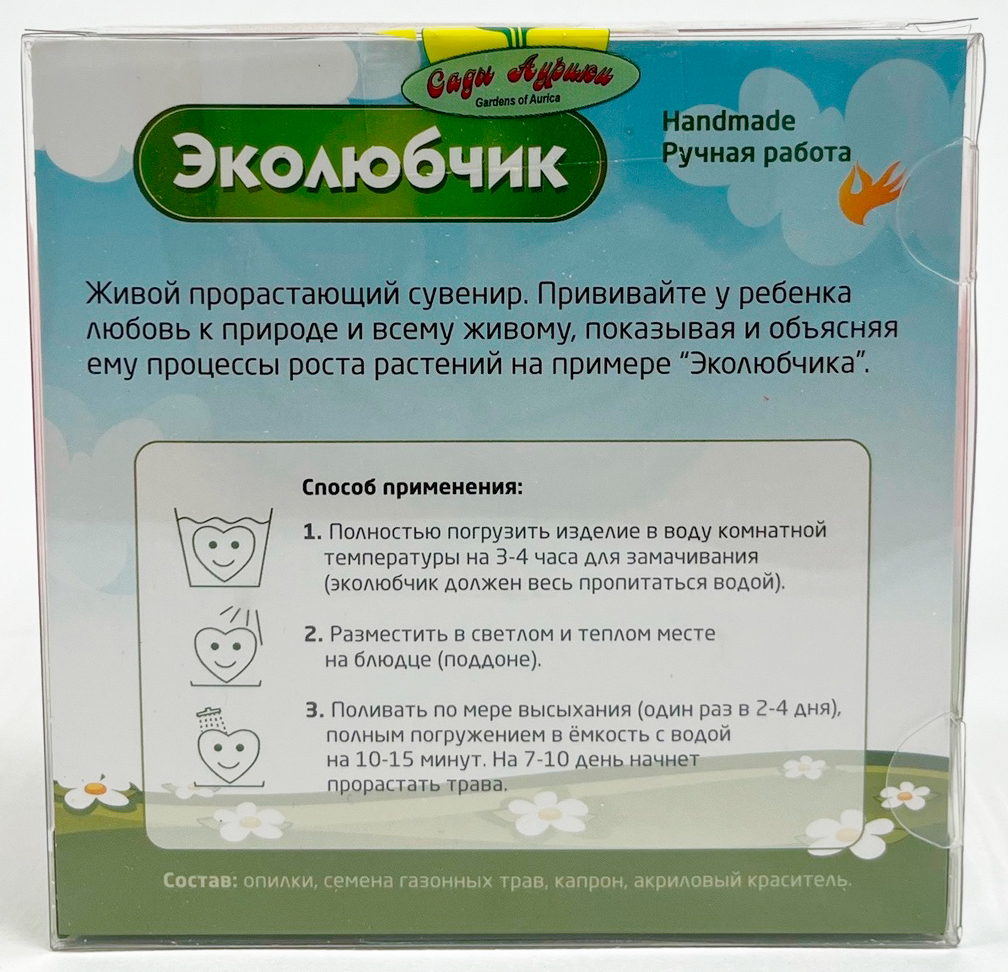 Травянчик "Эколюбчик"Травянчик - это забавное комнатное растение. Внутри фигурки содержатся питательный грунт и семена, которые при постоянном поливе превращаются в пучок густой травы.