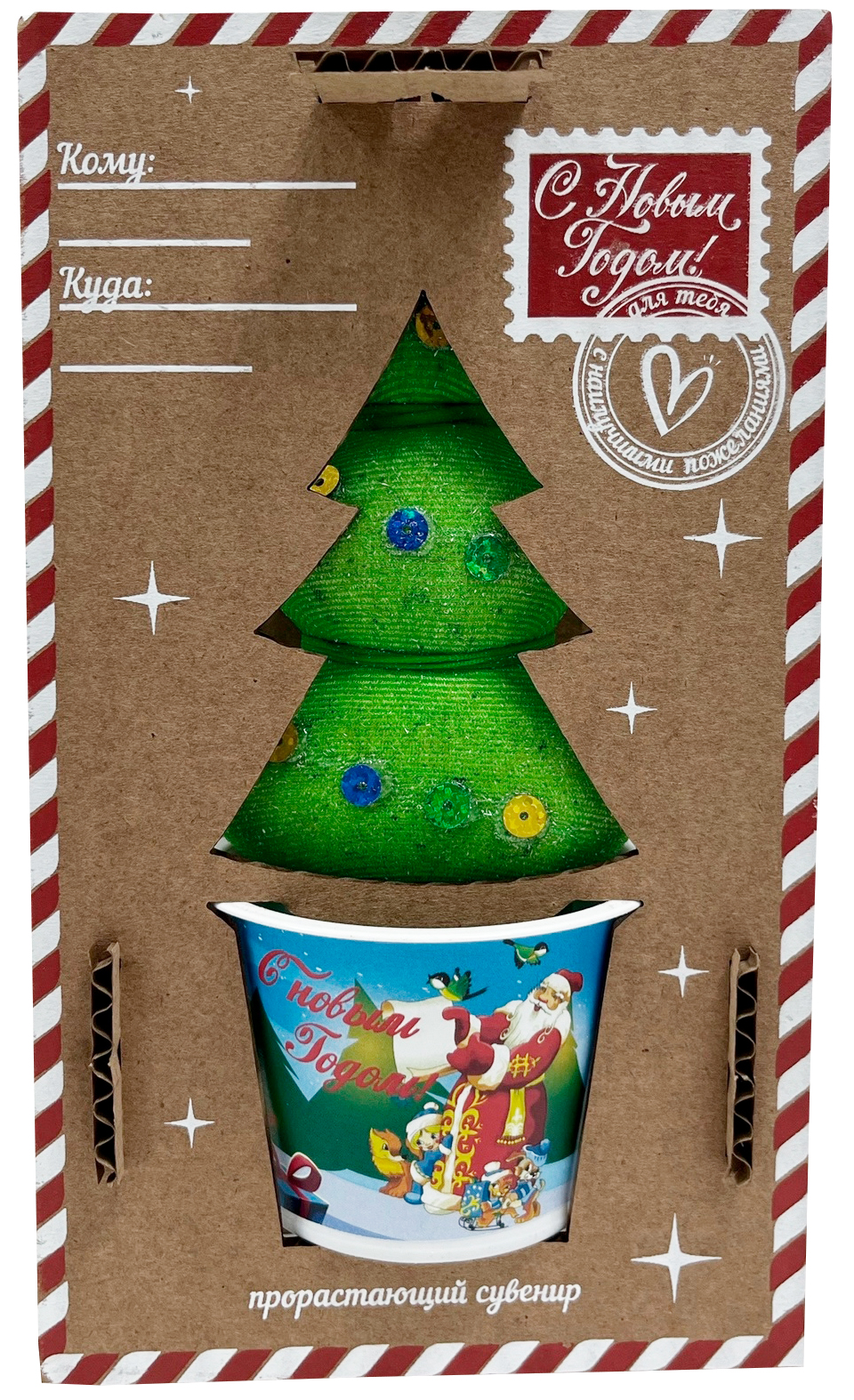Травянчик "Новогодний конверт" ЁлкаТравянчик - это забавное комнатное растение. Внутри фигурки содержатся питательный грунт и семена, которые при постоянном поливе превращаются в пучок густой травы!