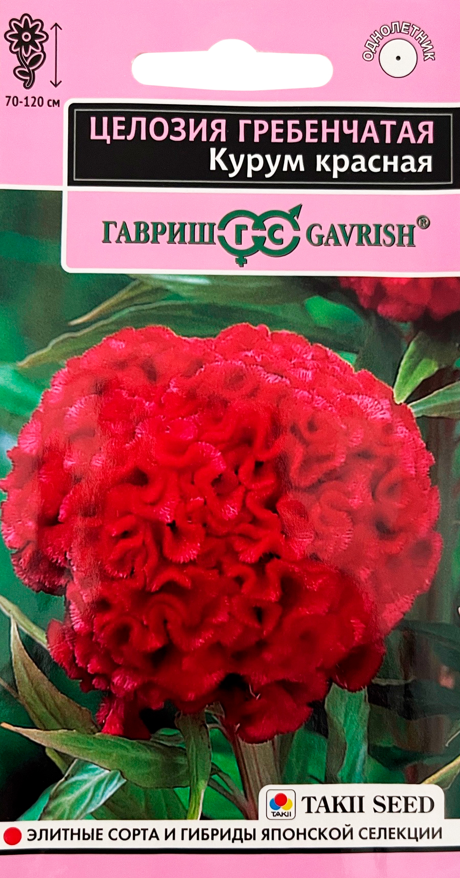 Целозия Курум красная гребенчатая* 8 шт.Однолетнее срезочное растение из семейства Амарантовые высотой 70-120 см с оригинальным крупным соцветием в виде гребня красной окраски и темно-зелеными листьями. Цветет с июля до заморозков. Целозия теплолюбива, светолюбива, относительно засухоустойчива, но молодым растениям необходим хороший полив. Предпочитает рыхлые, плодородные почвы. Выращивают рассадным способом. Семена высевают в марте в ящики, слегка присыпая землей. При температуре почвы 18-25°C всходы появляются через 14-20 дней. Сеянцы пикируют в горшочки, рассаду высаживают в начале июня. Уплотненные посадки (10-15 см между растениями) и избыток азотных удобрений негативно влияют на размер и количество соцветий. Используют для срезки или как акцентное растение для создания клумб.
