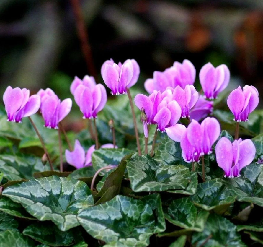 "Цикламен Плющелистный (1шт) 11 Cyclamen hederifoliumВ высоту вырастает до 10-15 см. Клубень плоский с пробковой поверхностью. Листья широкояйцевидные, овальные. Этот вид неповторим благодаря своим выямчато-зубчатым листьям, похожим на листья плюща, которые обычно украшены четким серебристым узором. Цветки 1,5 см и более в длину, розовые, одиночные, лепестки отогнуты назад. Отгиб лепестка по форме такой же, как у европейского цикламена, но при основании имеет четкие выступы - "рожки". Цветет с сентября по октябрь. Лишь после цветения вырастают листья, образуя небольшие красивые розетки.