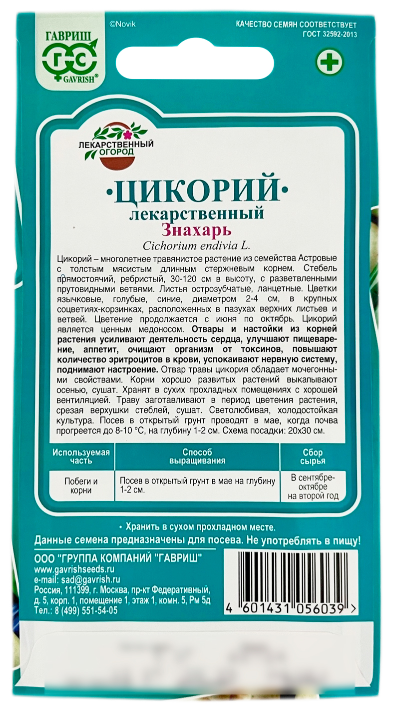 Цикорий лекарственный ЗНАХАРЬ ГАВРИШЦикорий – многолетнее травянистое растение семейства Астровые с толстым мясистым длинным стержневым корнем. Стебель прямостоячий, ребристый, 30–120 см в высоту, с разветвленными прутовидными ветвями. Листья острозубчатые ланцетные. Цветки язычковые, голубые, синие, диаметром 2-4 см, в крупных соцветиях–корзинках, расположенные в пазухах верхних листьев и ветвей. Цветение продолжается с июня по октябрь. Цикорий является ценным медоносом. Отвары и настойки из корней растения усиливают деятельность сердца, улучшают пищеварение, аппетит, очищают организм от токсинов, повышают количество эритроцитов в крови, успокаивают нервную систему, поднимают настроение. Отвар травы цикория обладает мочегонными свойствами. Корни хорошо развитых растений выкапывают осенью, сушат. Хранят в сухих прохладных помещениях с хорошей вентиляцией. Траву заготавливают в период цветения растения, срезая верхушки стеблей, сушат.