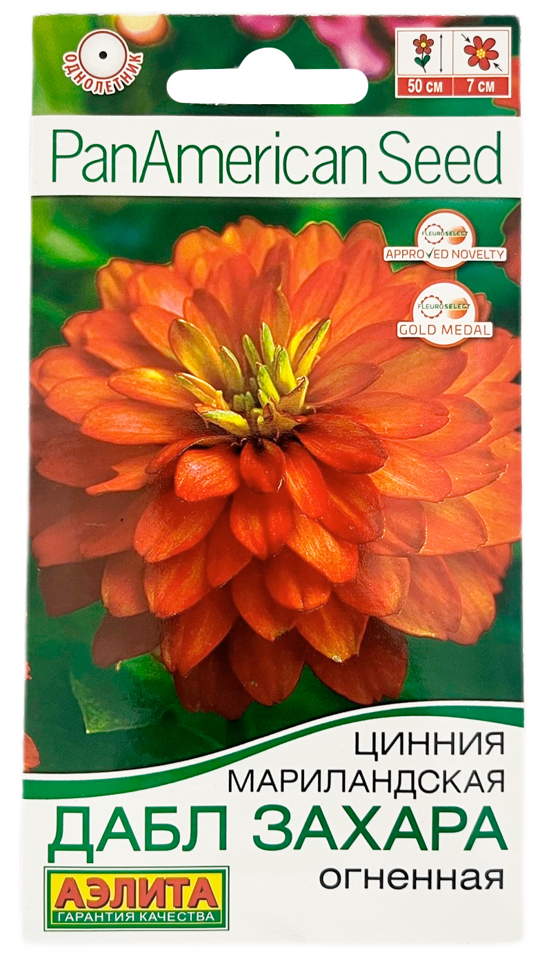Цинния мариландская ДАБЛ ЗАХАРА огненная АЭЛИТАКомпактное растение, высотой 40-50 см, дает ошеломляющее количество ярких полностью махровых цветов Ø 6-7 см. Соцветия долго сохраняют декоративность на растении, не боятся любых погодных условий. Серия цинний Дабл Захара рекомендуется для выращивания в клумбах, рабатках, в контейнерах и кашпо.