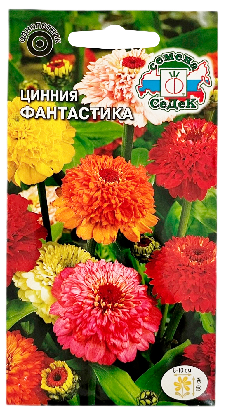 Цинния скабиозовидная Фантастика смесь СеДеКЯркая, словно веселое лето, смесь с оригинальной формой соцветий. Растение высокорослое, с прочными цветоносами. Соцветия скабиозовидные, крупные, разнообразной окраски: молочно-белой, желтой, оранжевой, огненно-красной, пурпурной. Растение тепло- и светолюбивое. Предпочитает плодородные рыхлые почвы, обильный полив. Сорт используется на цветниках, в массивах на газонах, рабатках, в срезке долго сохраняет декоративность и свежесть.