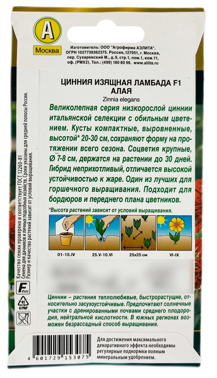 Цинния изящная ЛАМБАДА F1 алая АЭЛИТАВеликолепный гибрид низкорослой циннии с обильным цветением от итальянской компании Farao. Кусты компактные, выровненные, высотой около 20 см, сохраняют форму на протяжении всего сезона. Соцветия крупные, Ø 7 см, держатся на растении до 30 дней. Гибрид неприхотливый, отличается высокой устойчивостью к жаре. Один из лучших для горшечного выращивания. Отлично подходит для бордюров и переднего плана цветников.