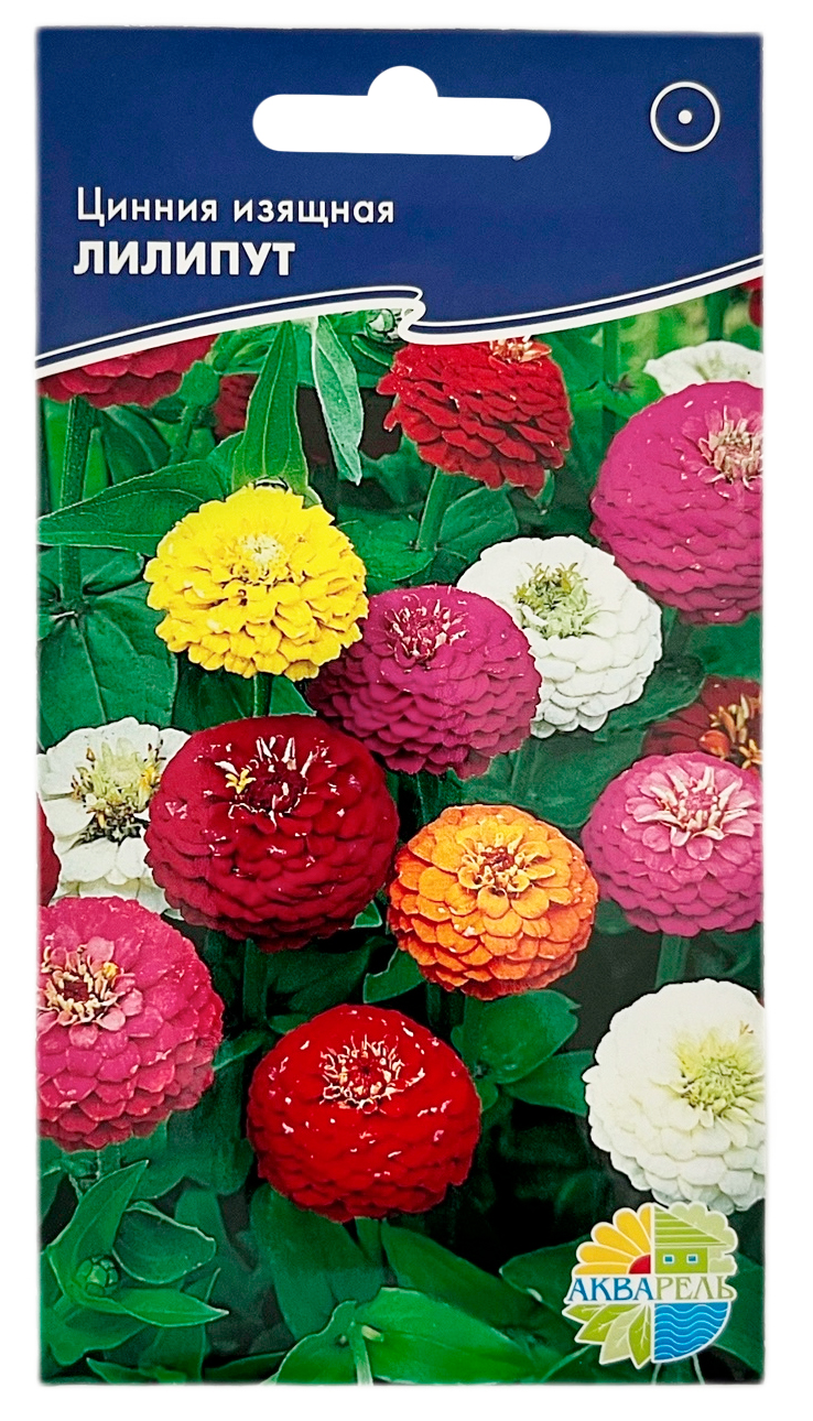 Цинния изящная ЛИЛИПУТ АКВАРЕЛЬОднолетнее компактное растение высотой 50 см с яркими махровыми (3-5 см в диаметре) соцветиями помпонной формы, самой разнообразной окраски. Прекрасный материал для оформления цветников, где ее лучше сажать группами между однолетниками и многолетниками. Хорошо сочетается с ноготками, бархатцами, астрами. Подходит для оформления садовых вазонов, балконных контейнеров.