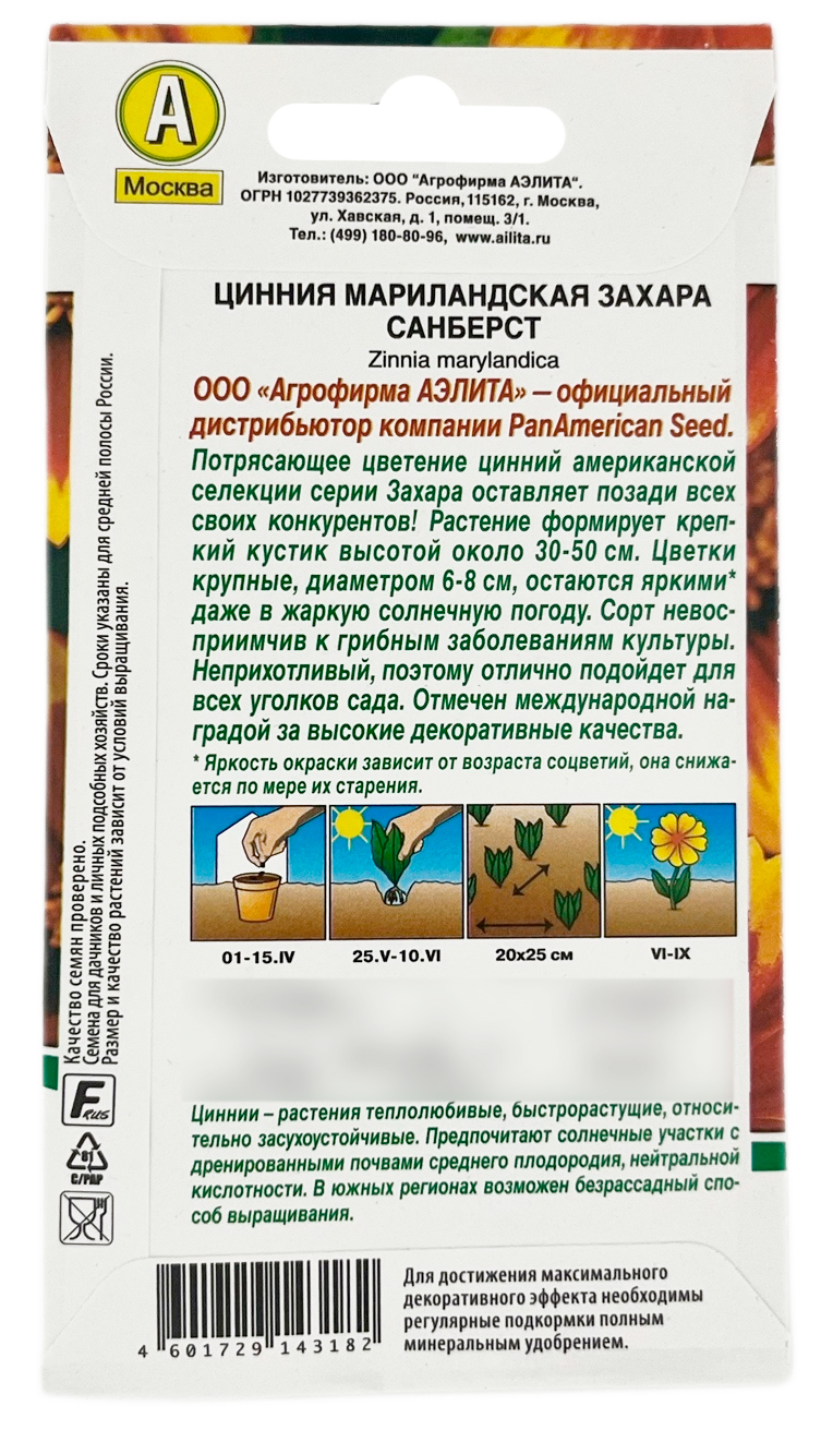 Цинния мариландская ЗАХАРА санбертс АЭЛИТАПотрясающее цветение цинний американской селекции серии Захара оставляет позади всех своих конкурентов! Растение формирует крепкий кустик высотой около 30-50 см. Цветки крупные, 6-8 см, остаются яркими* даже в жаркую солнечную погоду. Сорт невосприимчив к грибковым заболеваниям культуры. Неприхотливый, поэтому отлично подойдет для всех уголков сада.
