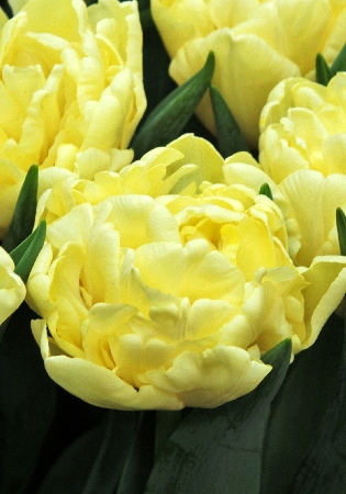 Тюльпан Авангард относится к группе Махровые ранние. Цветы этой группы имеют большое количество лепестков, высота растения до 45 см, цветок формой и величиной напоминает густомахровый пион. Размер бутона 6 см в высоту и 8-10 см в диаметре. Окрас цветка ванильно-желтый. Посадка - август, сентябрь, октябрь. Глубина посадки зависит от размера луковицы и её определяют как 3 высоты луковицы, если считать от её донца, а густоту - как 2 диаметра луковицы. Период цветения апрель-май. Используют махровые ранние тюльпаны в качестве горшечной культуры, для выгонки и декоративных посадках на переднем плане. В солнечную погоду цветы широко раскрываются, а после сильного дождя слишком тяжелые цветки могут клониться к земле. Недостатком махровых ранних тюльпанов является невысокий коэффициент размножения.Характеристики