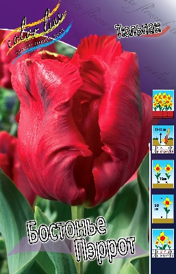 Тюльпан Бастонье Пэррот относится к группе Попугайные, высота растения 50 см. Форма цветка тюльпанов, широко раскрытая, не махровая, края лепестков сильно изрезаны, напоминающие растрепанные птичьи перья. Окрас цветка красный с бордовым напылением. Посадка конец сентября - октябрь. Глубина посадки зависит от размера луковицы и составляет в среднем 8-12 см. Минимальное расстояние между луковицами должно вдвое превышать их диаметр. Место посадки лучше менять 1 раз в 4-5 лет. Устойчивый, здоровый сорт, продолжительность цветения - от 8-10 дней. Период цветения - май - июнь. Почва - рыхлая, хорошо дренированная с нейтральной или слабощелочной реакцией. Сорт универсального назначения, подходит для срезки. Высаживаются попугайные тюльпаны, как правило, отдельно от остальных тюльпанов, на переднем плане, чтобы в полной мере оценить их необычную внешность.Характеристики