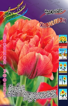 Тюльпан Дабл Художник относится к группе супер-тюльпанов "Двойной Эффект". Цветок хамелеон и махровый перевоплощения во время цветения: от желтого с оранжевым меланжем - в румяно-красно-оранжевый меланж с штрихами - в ярко-красный Продолжительность цветения - до 2-3 недель. Посадка август, сентябрь, октябрь. Глубина посадки зависит от размера луковицы и составляет в среднем 8-10 см. Минимальное расстояние между луковицами должно вдвое превышать их диаметр. Период цветения - апрель-май. Почва - нейтральная или известково-кислая. Место для их посадки на хорошо освещенном месте и в полутени. Сфера использования - ландшафтный дизайн, домашние декорации, для озеленения, на срезку.Характеристики