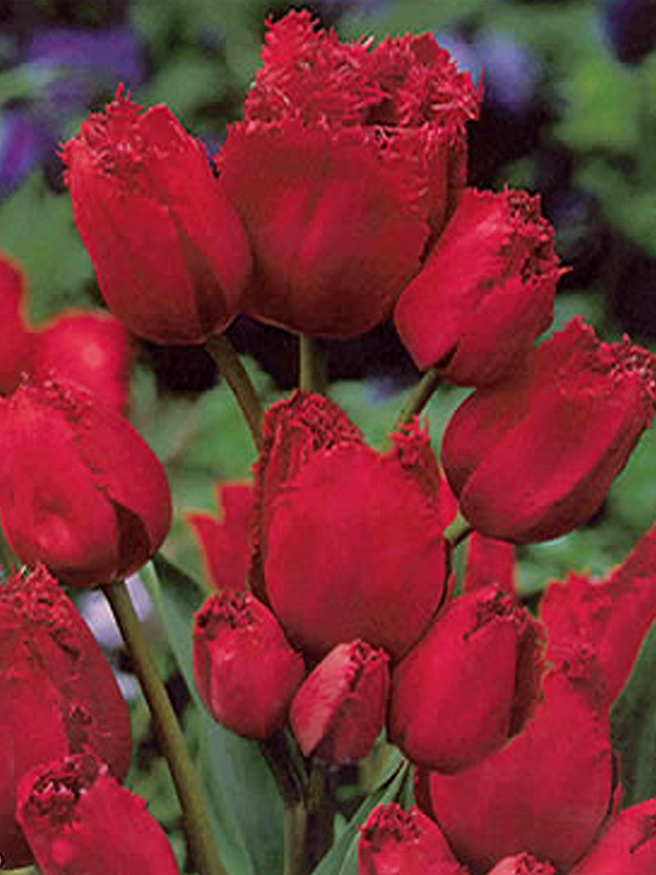 Тюльпан Джипси Лав (многоцветковый) – многолетнее луковичное растение высотой 45-50см с необычными завораживающими цветками. На одном стебле развивается от 3 до 6 цветоносов. Бордово-красные бахромчатые цветки высотой 7см образуют шикарный восхитительный букет. Тюльпан Джипси Лав широко используют как для озеленения и украшения клумб, так и для букетов.Почва должна быть легкой песчаной или суглинистой с нейтральной реакцией. Кислые почвы известкуют за два года до посадки тюльпанов. На участки с тяжелыми глинистыми почвами вносить песок и торф, добавлять минеральные и азотосодержащие удобрения.