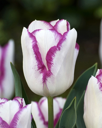 Тюльпан Эффэер относится к группе Триумф. Высота растения до 45 см. Цветок бокаловидный, крупный. Окраска цветка6 белая с сиреневым краем. Высота бокала цветка до 7-9 см. Посадка - август, сентябрь, октябрь. Глубина посадки зависит от размера луковицы и составляет в среднем 8-12 см. Минимальное расстояние между луковицами должно вдвое превышать их диаметр. Период цветения - апрель - май. Почва - нейтральная или известково - кислая. Тюльпаны Триумф универсальны, их используют для срезки, для выгонки, для украшения парков и садов. Недостаток тюльпанов группы Триумф: слабая сопротивляемость многих сортов вирусу пестролепестности.Характеристики
