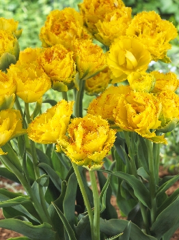 Тюльпан Голден Чирс относится к группе Триумф. Высота растения до 45 см, цветок бокаловидный, крупный. Окрас цветка: желтый. Высота бокала цветка до 8 см. Посадка - август, сентябрь, октябрь. Глубина посадки зависит от размера луковицы и составляет в среднем 8-12 см. Минимальное расстояние между луковицами должно вдвое превышать их диаметр. Период цветения - апрель - май. Почва - нейтральная или известково - кислая. Тюльпан Голден Чирс универсален, используется для выгонки, для украшения парков и садов. Цветет довольно продолжительное время и хорошо сохраняет форму бокала. Недостатком является слабая сопротивляемость вирусу пестролепестности.Характеристики