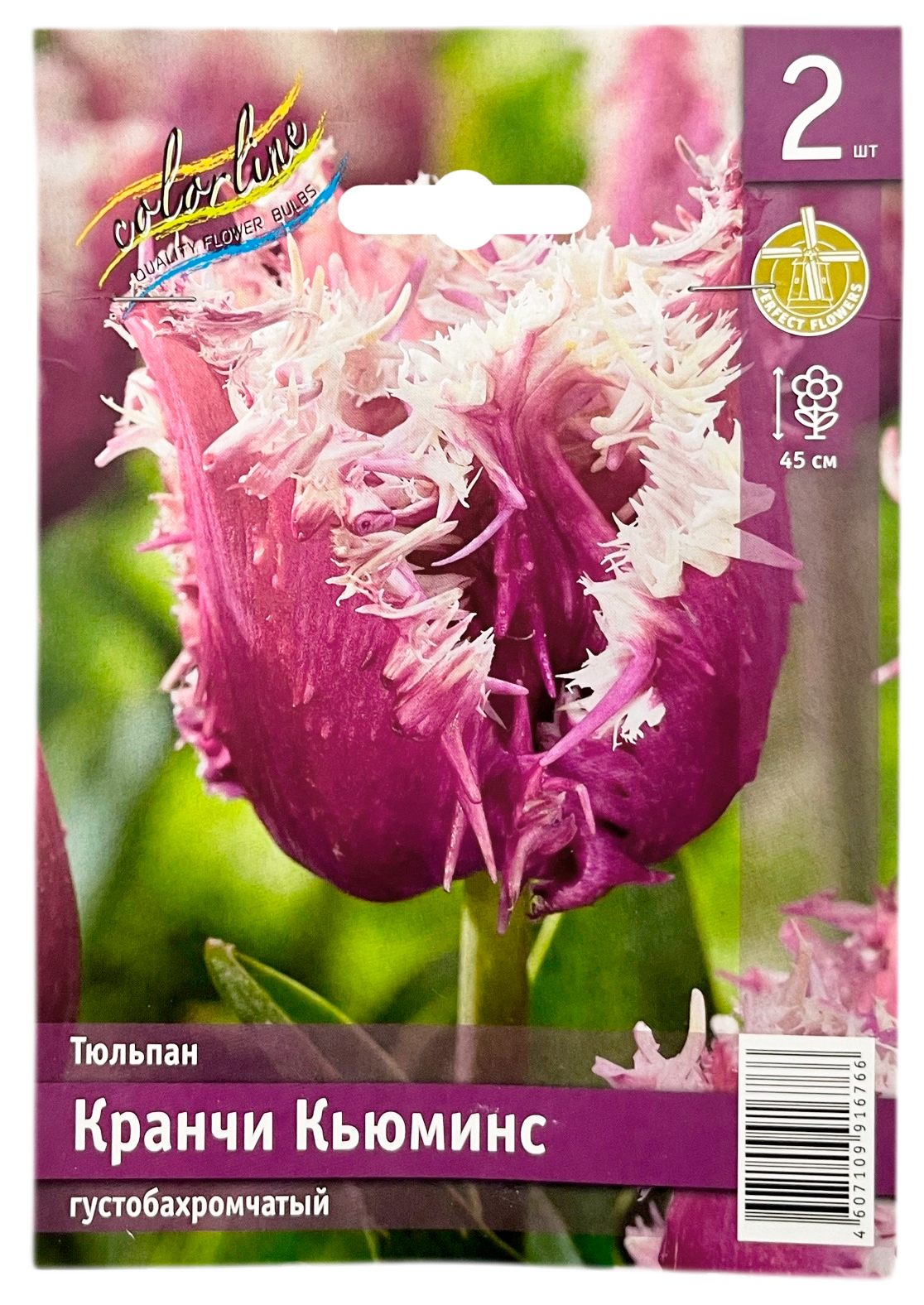 Тюльпан КРАНЧИ КЬЮМИНС густобахромчатыйВысота до 45 см. Необычная окраска цветка: лилово-розовый бокал с нежно кремовыми "иголками" по краям. Великолепно смотрится как в посадках поодиночке, так и в сочетании с другими цветами.