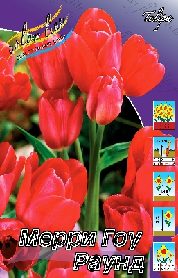 Тюльпан Мерри Гоу Раунд относится к группе Многоцветковые, высота растения 45 см, цветки имеют бокаловидные бутоны с немного заостренными лепестками, высота бокалов 6-8 см. Окрас цветка классический алый. Посадка - август, сентябрь, октябрь. Глубина посадки зависит от размера луковицы и составляет в среднем 8-12 см. Минимальное расстояние между луковицами должно вдвое превышать их диаметр. Период цветения: конец апреля - начало мая. Почва нужна плодородная, рыхлая, хорошо дренированная, умеренно увлажненная с нейтральной или щелочной реакцией. Сорт универсального назначения. Сфера использования - подходит как для озеленения и украшения клумб, так и для букетов, отлично растет на хорошо освещенном месте и в полутени. Элегантный букет на одном стебле.Характеристики