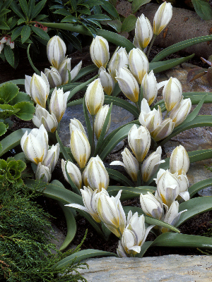 Тюльпан Многоцветный белый с жёлтым центром. цветы чрезвычайно душистые.Характеристики