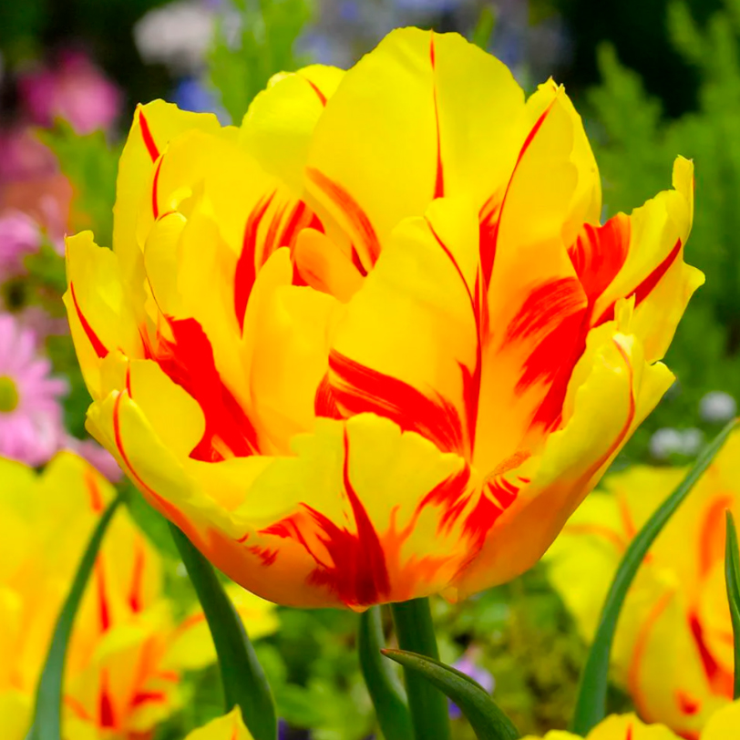 Тюльпан Монселла (махровый ранний) — многолетнее луковичное растение высотой 50 см с необычными завораживающими цветками диаметром 10–12 см.Множество желтых лепестков с красными полосами образуют шикарный восхитительный бокал. Тюльпан Монселла широко используют как для озеленения и украшения клумб, так и для букетов. Почва должна быть легкой песчаной или суглинистой с нейтральной реакцией. Кислые почвы известкуют за два года до посадки тюльпанов.