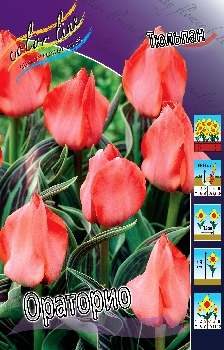 Тюльпан Ораторио относится к группе Грейга. Высота растения до 18 см. Цветок крупный с широким основанием и слегка отогнутыми наружу кончиками лепестков, декоративная листва. Окраска цветка светло-розовая. Посадка - август, сентябрь, октябрь. Глубина посадки зависит от размера луковицы и составляет в среднем 7- 8 см. Минимальное расстояние между луковицами должно вдвое превышать их диаметр. Период цветения - апрель - май. Почва - нейтральная или известково - кислая, хорошо дренированная, умеренно увлажненная. По освещённости предпочитают солнечные безветренные места. Сфера использования - для выращивания в садах, в бордюрах, на альпийских горках и т.п.Характеристики