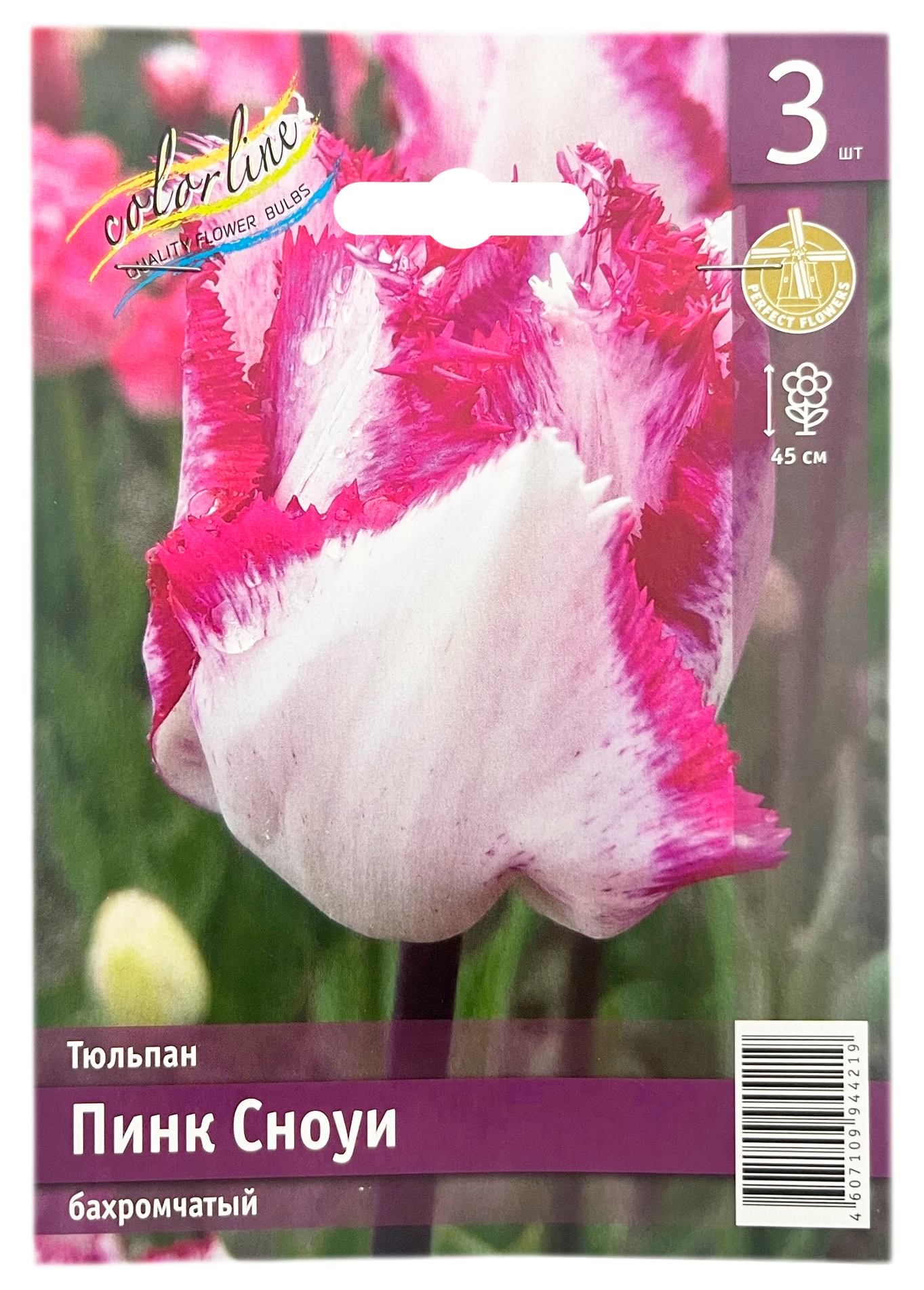 Тюльпан бахромчатый ПИНК СНОУИВысота до 45 см. Лепестки окрашены в нежный розовый цвет с белой окантовкой. Диаметр цветка до 12 см. Этот сорт идеально подходит для украшения клумб, бордюров и для срезки.