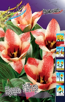 Тюльпан Царь Пётр относится к группе Грейга. Высота растения до 35 см. Цветок крупный с широким основанием и слегка отогнутыми наружу кончиками лепестков, декоративная листва. Окрас цветка белый с полосой розово-красных крапинок. Посадка - август, сентябрь, октябрь. Глубина посадки зависит от размера луковицы и составляет в среднем 7- 8 см. Минимальное расстояние между луковицами должно вдвое превышать их диаметр. Период цветения - апрель - май. Почва - нейтральная или известково - кислая, хорошо дренированная, умеренно увлажненная. По освещённости предпочитают солнечные безветренные места. Сфера использования - для выращивания в садах, в бордюрах, на альпийских горках и т.п.Характеристики