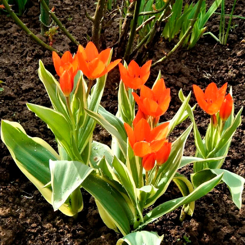 Тюльпан Уникум ПраестансСорт многоцветковый, листва декоративная, на одном стебле сразу несколько цветков. Принадлежит к группе ботанических тюльпанов. Цветки тюльпана Praestans Unicum окрашены в яркий, красный цвет, высота цветоносов 20-30 см. Характерной особенностью является выровненность по высоте, устойчивость к порывам ветра и необычная расцветка листьев - светло-салатового цвета с белой окантовкой по краю. Прекрасно и очень нарядно смотрятся в групповых посадках на клумбах, даже когда отцветут. Идеально сочетаются с раноцветущими нарцисами, крокусами и фиалками, адаптирован к нашим зимам.