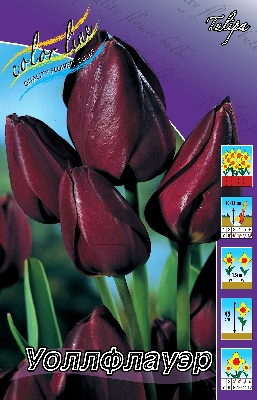 Тюльпан Уоллфлауэр относится к группе Многоцветковые, высота растения 45 см, цветки имеют бокаловидные бутоны с немного заостренными лепестками, высота бокалов 6-8 см. Окрас цветка темно-бордовый. Посадка - август, сентябрь, октябрь. Глубина посадки зависит от размера луковицы и составляет в среднем 8-12 см. Минимальное расстояние между луковицами должно вдвое превышать их диаметр. Период цветения: конец апреля - начало мая. Почва нужна плодородная, рыхлая, хорошо дренированная, умеренно увлажненная с нейтральной или щелочной реакцией. Сорт универсального назначения. Сфера использования - подходит как для озеленения и украшения клумб, так и для букетов, отлично растет на хорошо освещенном месте и в полутени. Элегантный букет на одном стебле.Характеристики