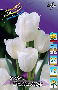 Тюльпан Вайс Берлинер относится к группе Многоцветковые, высота растения 45 см, цветки имеют бокаловидные бутоны с немного заостренными лепестками, высота бокалов 6-8 см. Окрас цветка белый с кремовым оттенком. Посадка - август, сентябрь, октябрь. Глубина посадки зависит от размера луковицы и составляет в среднем 8-12 см. Минимальное расстояние между луковицами должно вдвое превышать их диаметр. Период цветения: конец апреля - начало мая. Почва нужна плодородная, рыхлая, хорошо дренированная, умеренно увлажненная с нейтральной или щелочной реакцией. Сорт универсального назначения. Сфера использования - подходит как для озеленения и украшения клумб, так и для букетов, отлично растет на хорошо освещенном месте и в полутени. Элегантный букет на одном стебле.Характеристики