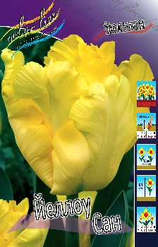 Тюльпан Йеллоу Сан относится к группе Попугайные, высота растения 50 см. Форма цветка тюльпанов, широко раскрытая, не махровая, края лепестков сильно изрезаны, напоминающие растрепанные птичьи перья. Окрас цветка лимонно-жёлтый, размер цветка до 20 см в диаметре. Посадка конец сентября - октябрь. Глубина посадки зависит от размера луковицы и составляет в среднем 8-12 см. Минимальное расстояние между луковицами должно вдвое превышать их диаметр. Место посадки лучше менять 1 раз в 4-5 лет. Устойчивый, здоровый сорт, продолжительность цветения - от 8-10 дней. Период цветения - май - июнь. Почва - рыхлая, хорошо дренированная с нейтральной или слабощелочной реакцией. Сорт универсального назначения, подходит для срезки. Высаживаются попугайные тюльпаны, как правило, отдельно от остальных тюльпанов, на переднем плане, чтобы в полной мере оценить их необычную внешность.Характеристики