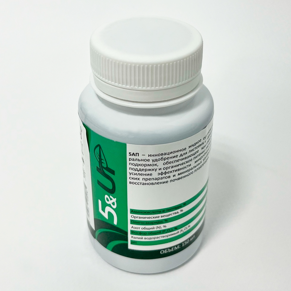 5АП – инновационное жидкое органоминеральное удобрение для листовых и корневых подкормок, обеспечивающее комплексную поддержку и органическое питание растений, усиление эффективности микробиологических препаратов и минеральных удобрений, восстановление почвенного плодородия.