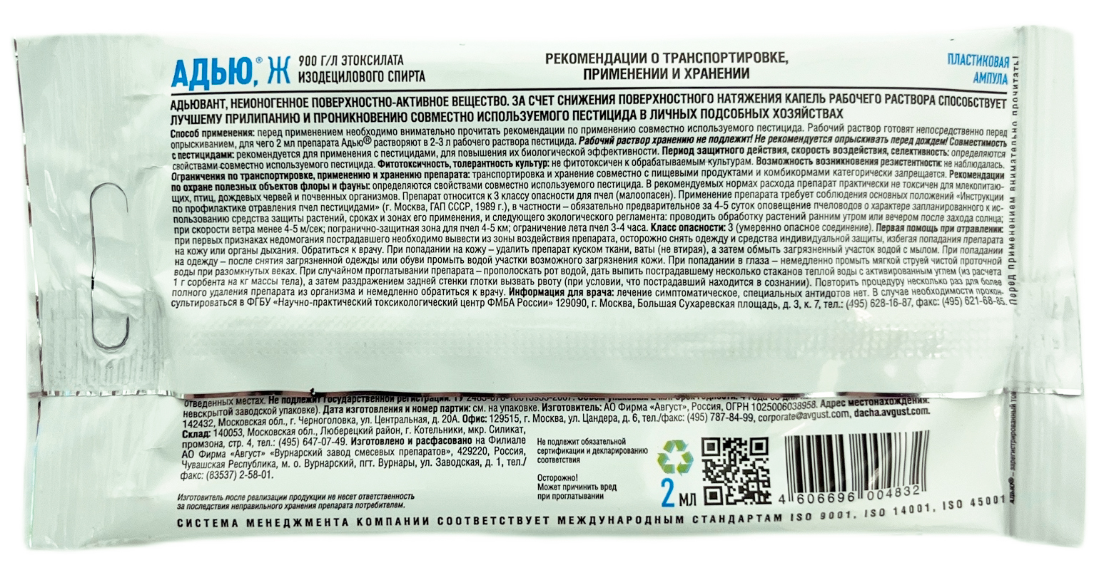 Адью 2млУскоритель активности средств защиты растений и удобрений.