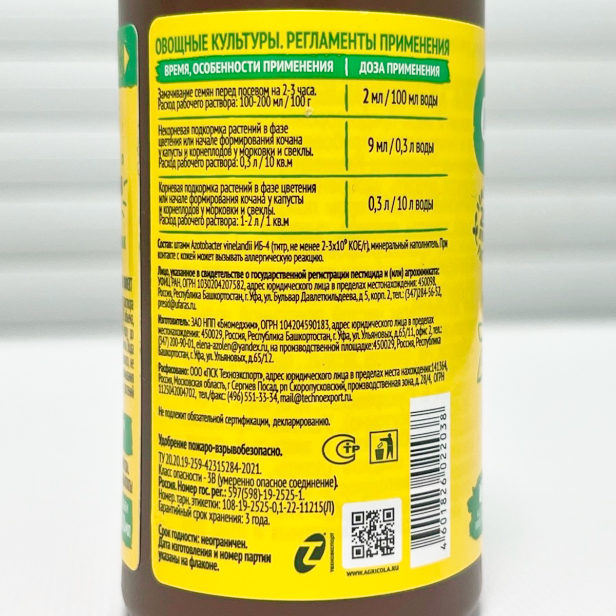 - В составе азотфиксирующие бактерии Azotobacter vinelandi ИБ-4, которые обеспечивают растение азотом и фосфором в доступной форме;