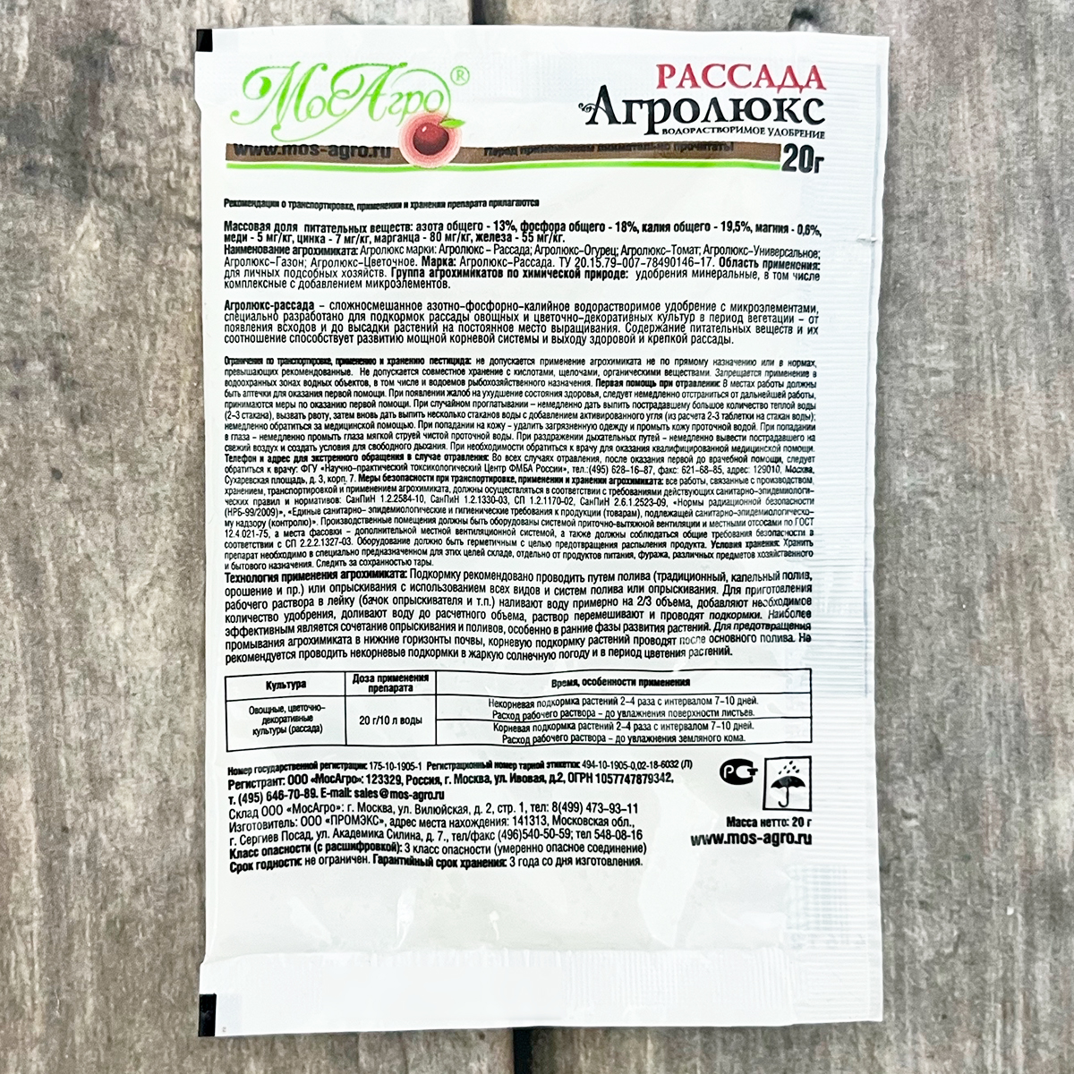 Рассада АГРОЛЮКС 20гВодорастворимое удобрение для рассады, овощных и цветочных культур.