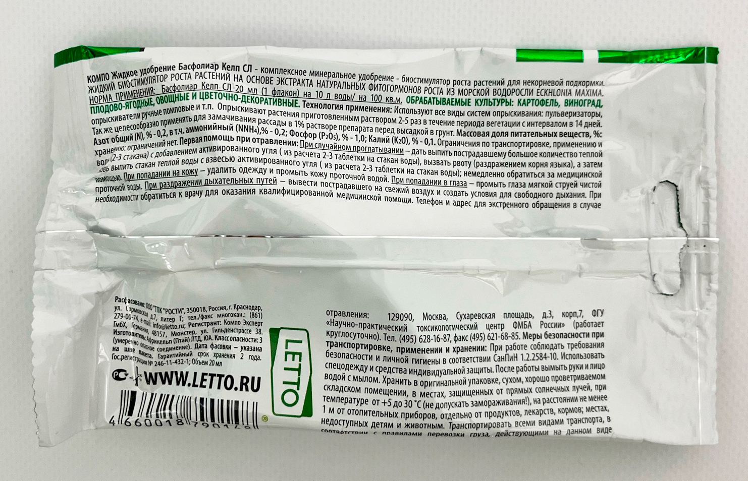 Басфолиар Келп СЛ СОМРО 20млКомплексное минеральное удобрение - биостимулятор роста растений для некорневой подкормки. ЖИДКИЙ БИОСТИМУЛЯТОР РОСТА РАСТЕНИЙ НА ОСНОВЕ ЭКСТРАКТА НАТУРАЛЬНЫХ ФИТОГОРМОНОВ РОСТА ИЗ МОРСКОЙ ВОДОРОСЛИ ECKHLONIA MAXIMA.