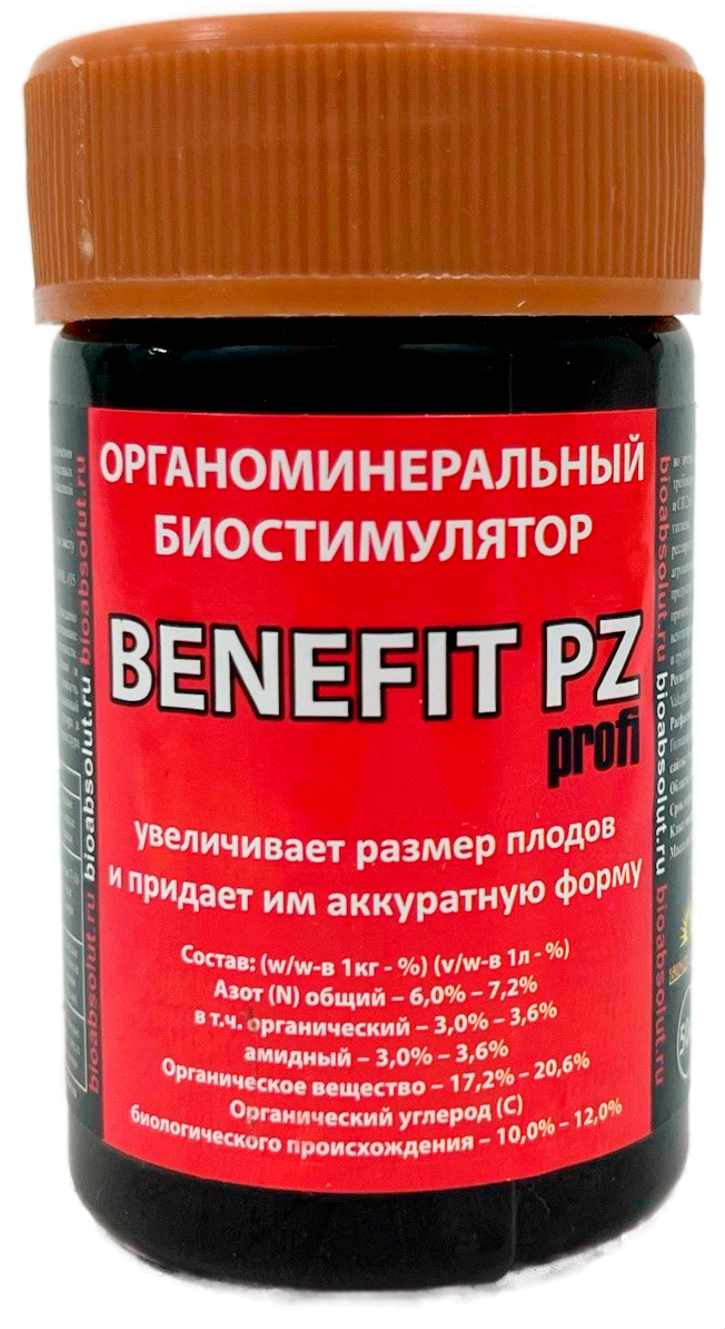 BENEFIT PZ PROFI (Бенефит) 50млМожно увеличить размер плодов азотом, но это приводит к увеличению размера клеток, а не их количества. При этом повышается их оводненность, клеточные стенки истончаются, что приводит к потере вкусовых качеств, снижению иммунитета, лежкости и транспортабельности плодов.