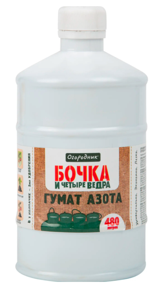 Гумат Азота Бочка и 4 ведра 0.6лАзотное удобрение Огородник Бочка и четыре ведра - обеспечивает нормальное развитие и активацию роста ягодных и цветочно - декоративных культур. Ускоряет созревание плодов. Продлевает срок цветения, делает соцветия крупными и ароматными. Способствует нарастанию зеленной массы растений (листьев, стеблей). Улучшает вкус фруктов, ягод, овощей. Увеличивает срок хранения плодов. Повышает иммунитет.