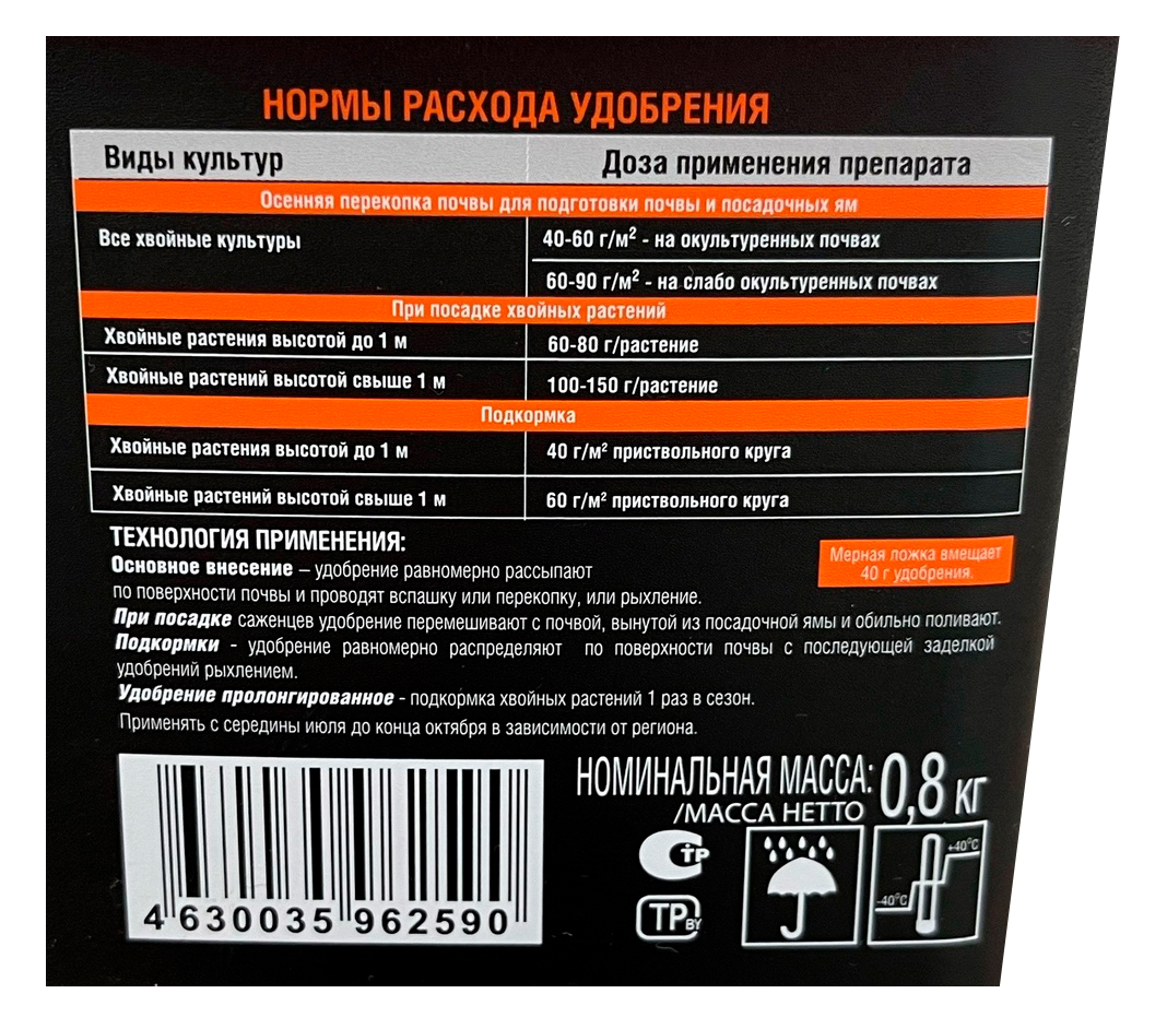 Хвойное осеннее удобрение применяют перед наступлением зимы. Это способствует повышению зимостойкости растений и формирует запас питательных элементов на следующий вегетационный период.