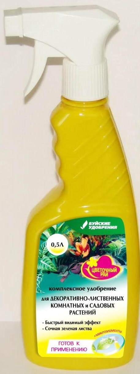 Жидкие удобрения легко достигают корня растения и действуют гораздо быстрее твёрдых подкормок. Они могут работать на маленьких площадях, поэтому вы без труда восполните дефицит нужного элемента у одного участка земли, не трогая другой.Удобрение комплексное жидкое "Чудо спрей" для Цветущих комнатных и садовых растений, 0,5 л поможет вам эффективно выращивать огородные культуры. Средство хорошо растворяется и впитывается в почву, попадая к сеянцам максимально быстро. Оно не истощает земли и не влияет на соседние саженцы. В правильных дозировках состав даёт положительный эффект.
