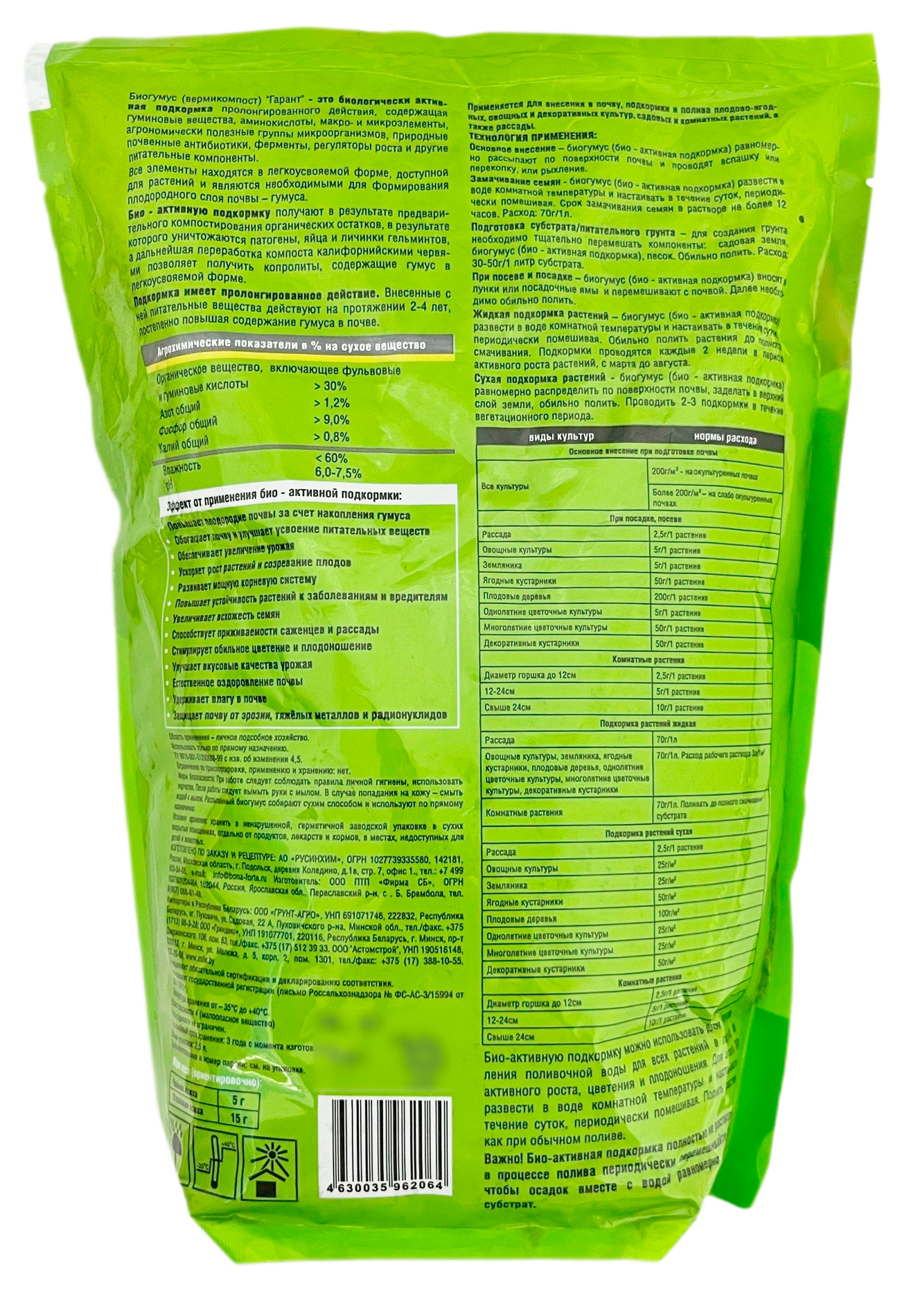 Состав: концентрированный биогумус с аминокислотами.