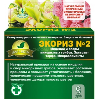 Экориз №2 для цветочных культур 9 доз.Препараты «ЭКОРИЗ» на основе мицелия и спор микоризных грибов. Усиливает ростовые процессы и повышает устойчивость к болезням. Ускоряет цветение и созревание.